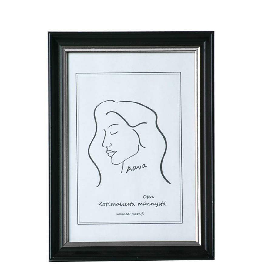 Aava puukehys 20x25cm, musta on valmistettu kotimaisesta männystä. Kehyksissä on tukeva seisontatuki ja kirkas pesty lasi. Voidaan asettaa seinälle tai pöydälle pysty- tai vaaka-asentoon.
