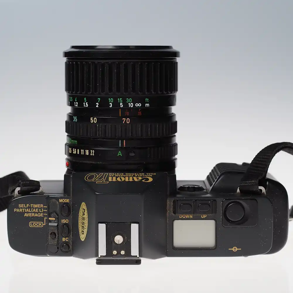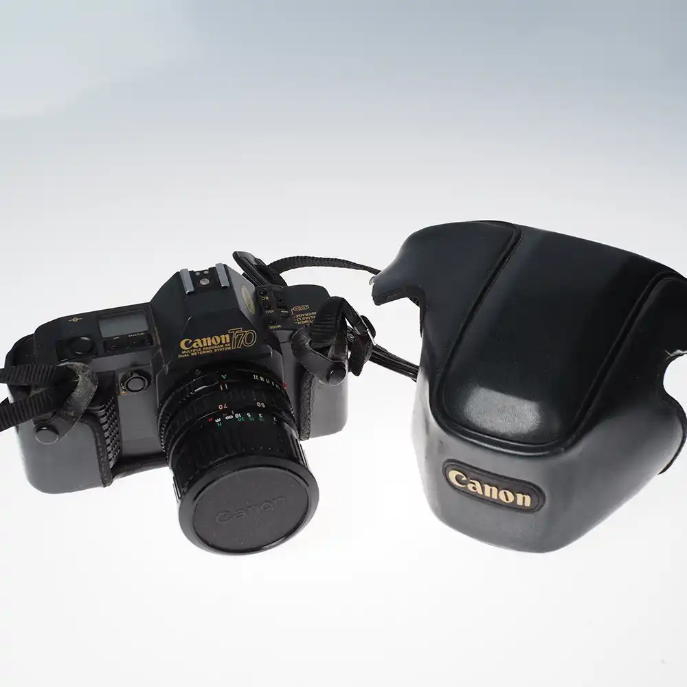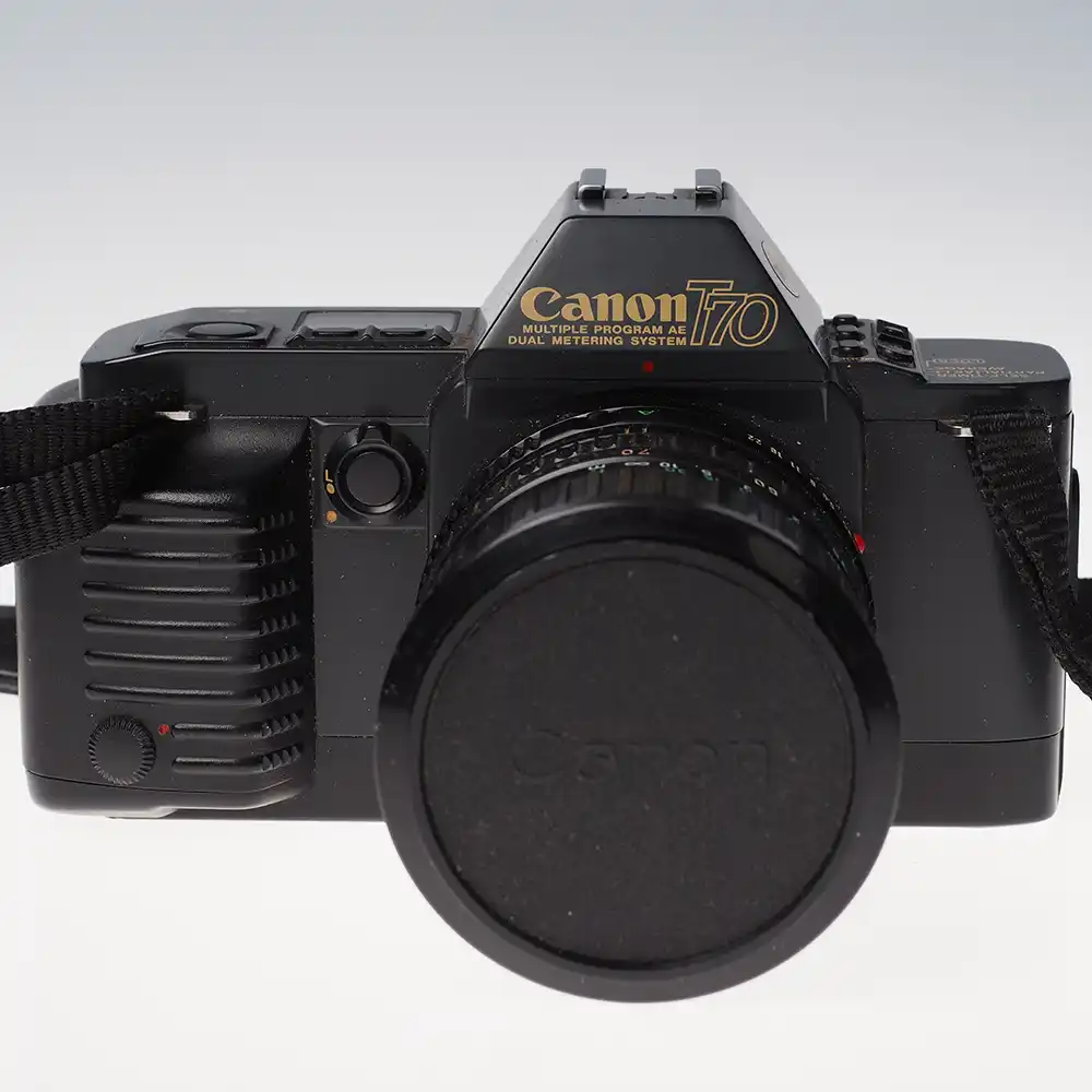 Canon T70 on vuonna 1984 julkaistu kulttiklassikko, joka voitti ilmestyessään European Camera of the Year -palkinnon. Se oli aikanaan vallankumouksellinen yhdistelmä perinteistä FD-kiinnityksen optiikkaa ja uutta tietokoneohjattua automatiikkaa. T70 on tunnettu selkeästä nestekidenäytöstään ja helppokäyttöisyydestään, mikä tekee siitä erinomaisen valinnan niin aloittelevalle filmikuvaajalle kuin kokeneemmallekin harrastajalle.