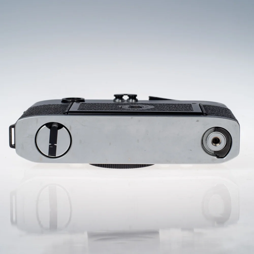 Leica M5 julkaistiin 1971 ja se on M-sarjan historiassa ainutlaatuinen: ensimmäinen Leica M -kamera, johon on integroitu TTL-valotusmittari suoraan runkoon. CdS-mittausanturi nousee linssin eteen kun suljin viritetään, mittaa valon suoraan filmiaukon läpi ja laskeutuu pois ennen sulkimen laukaisua – mekaanisesti nerokas ratkaisu. Etsin näyttää suljinopeuden suoraan näkymässä, ja kaksoisneulajärjestelmä ohjaa valinnan oikeaan valotukseen nopeasti ja tarkasti. Tuloksena on filmikamera, jossa ei tarvita ulkoista mittaria – ainutlaatuinen ominaisuus M-sarjassa ennen M6:ta.